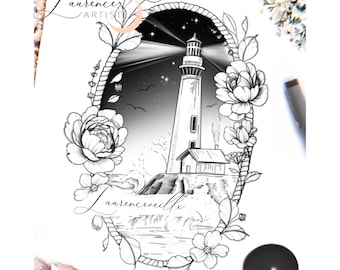 Instant Download Tattoo Design Lighthouse Starry Night And Etsy Uk